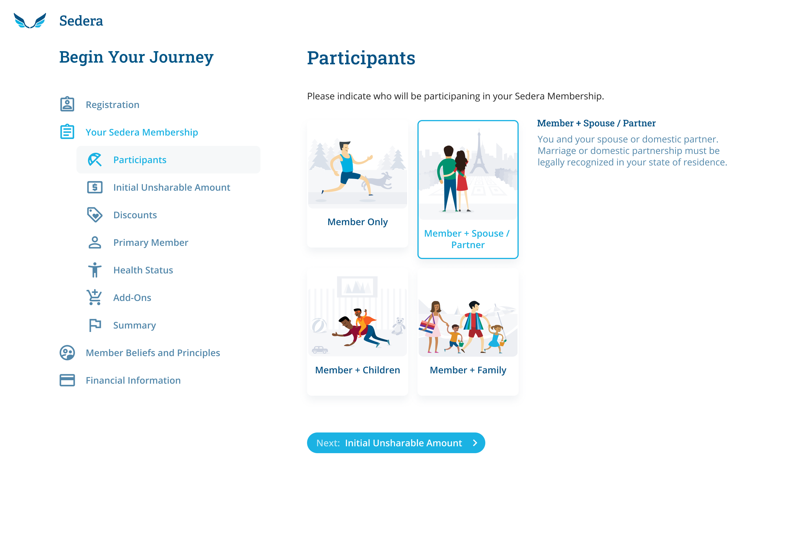 Created in Salesforce, Sedera’s legacy system was expensive to operate, difficult to resource with skilled developers, and kludgy to customize or extend. What’s more, one of the most pivotal user experiences — member enrollment — was extremely difficult for users to complete.